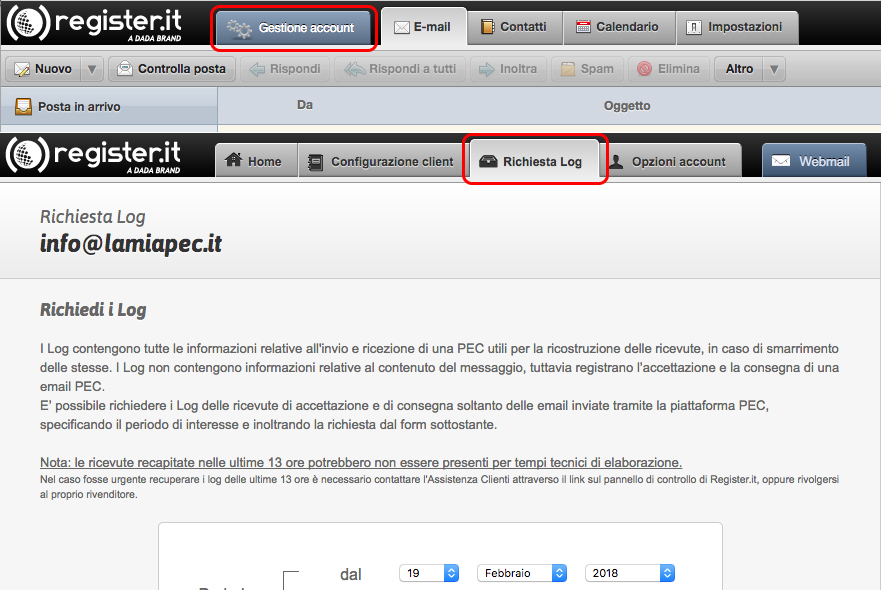 Gestione account > Richiesta log |