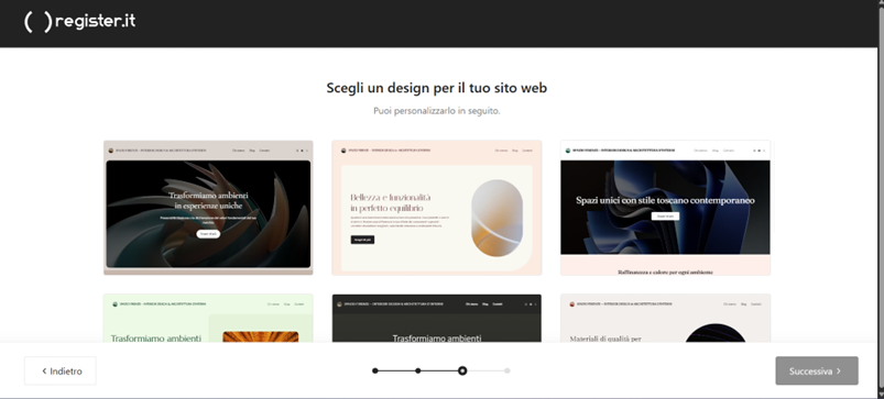 In base alle informazioni inserite, ti verranno mostrati diversi design possibili.