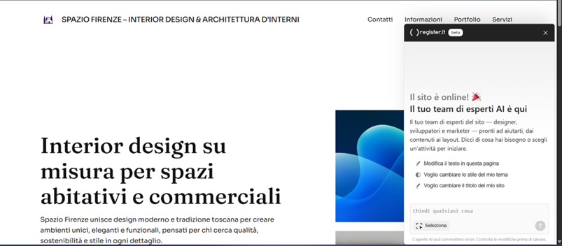 usa la finestra che compare in basso nel browser per richiedere modifiche, cambiare colori, font, immagini, layout e tutto ciò di cui hai bisogno.