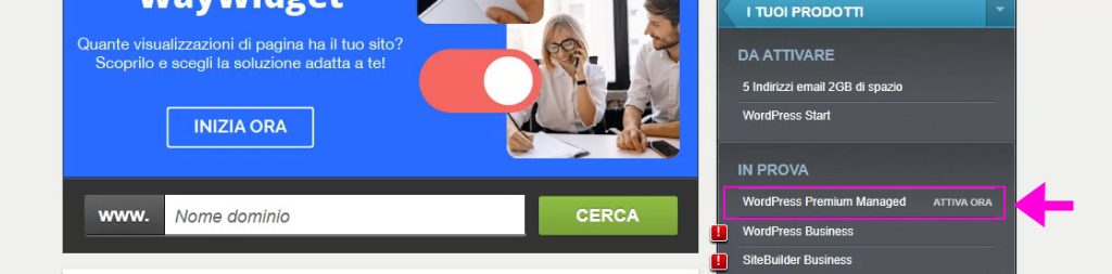Dopo l’ordine, nella tua area personale vedrai il prodotto con lo stato “Da attivare”.