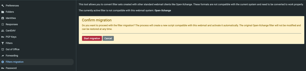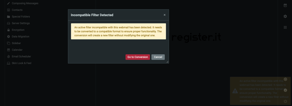 - Quando accedi alla nuova webmail (Roundcube), ti verrà chiesto di importare i filtri.