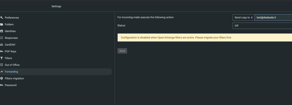 - Filtro OpenXchange (disattivato)