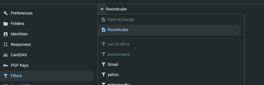 Gestione dei filtri in Roundcube