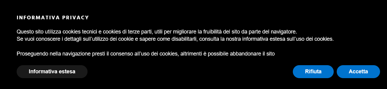 Il codice del cookie banner andrà inserito nell'area head del sito, mentre il codice della privacy&cookie policy andrà aggiunto al footer