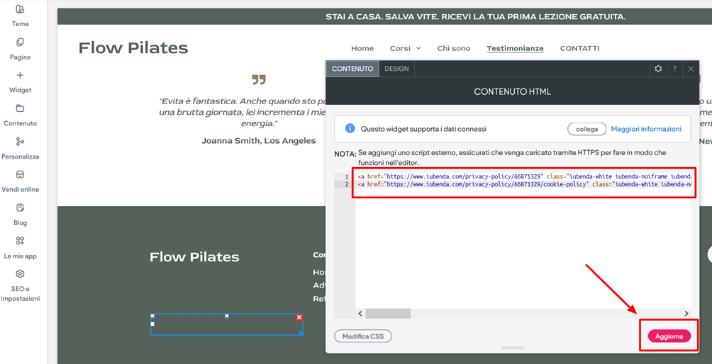 Se utilizzi Micro Site (versione gratuita), non è possibile inserire codice HTML personalizzato.