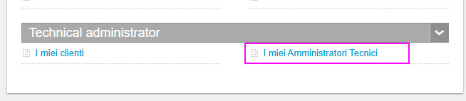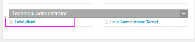 Clicca su “I miei clienti”, all’interno dell’area Technical Administrator (ultima sezione in basso). Da qui puoi iniziare la procedura per renderti disponibile come amministratore tecnico per un cliente.