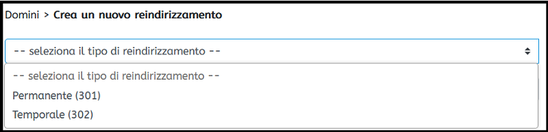 a) Nel campo Selezionare il tipo di reindirizzamento, scegliere il tipo di reindirizzamento che si desidera configurare.